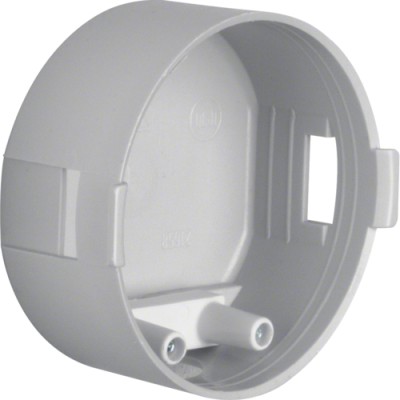 Berührungsschutzdose mit 45 mm Ø. Vier Leitungsöffungen für bis zu 12 mm Ø und einer Einbautiefe von 35,5 mm. Ausgestattet mit einer Zugentlastung. Schwer entflammbar nach VDE0606-1.