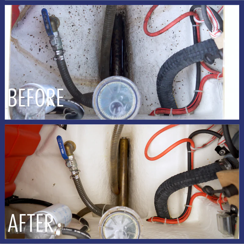 Bei der Reinigung von Polyester, Gelcoat, Motorräumen, Plastikteilen, Gummi, Deckteppichen, Abgasflecken, lackierten und unangenehmen Objekten. (Extreme) Außenabfälle wie Kalk, grüne Ablagerungen, Fett, Öl und schwarze Streifen verschwinden sehr einfach und schnell.