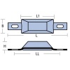 L=250 mm, LL= 180 mm, L1 140 mm, B= 82 mm, H= 26 mm, Gewicht 2,000 kg.