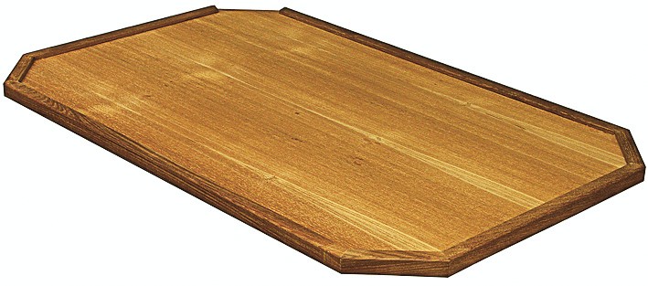 kunststoffbeschichtete Platte in Teakimitation. Sehr strapazierfähige Oberfläche, schnitt- und wärme-unempfindlich in Arbeitsplattenqualität.